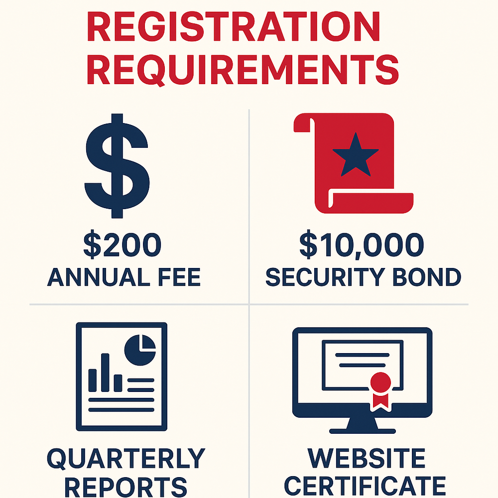 Companies must: • Register with the Texas Secretary of State as telemarketers • Pay a $200 annual fee • Post a $10,000 security bond • Submit quarterly reports • Display registration certificates on their websites.